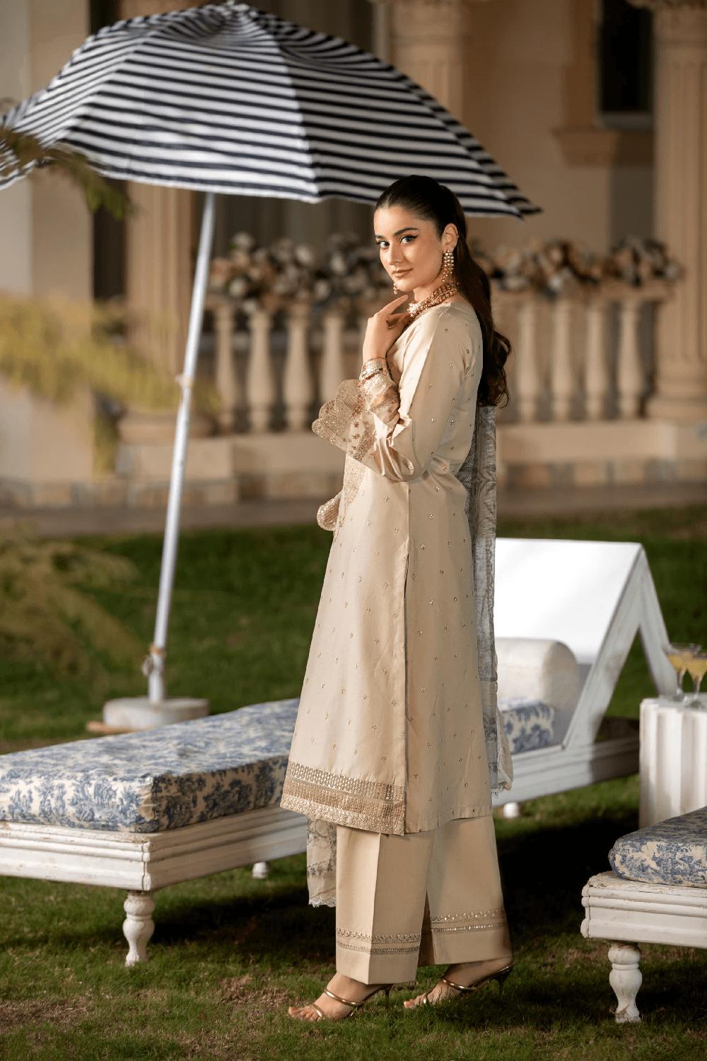 Le dupatta en organza, sublimé par de délicates broderies ornées de strass, apporte une touche chic et harmonieuse à l’ensemble. ✨