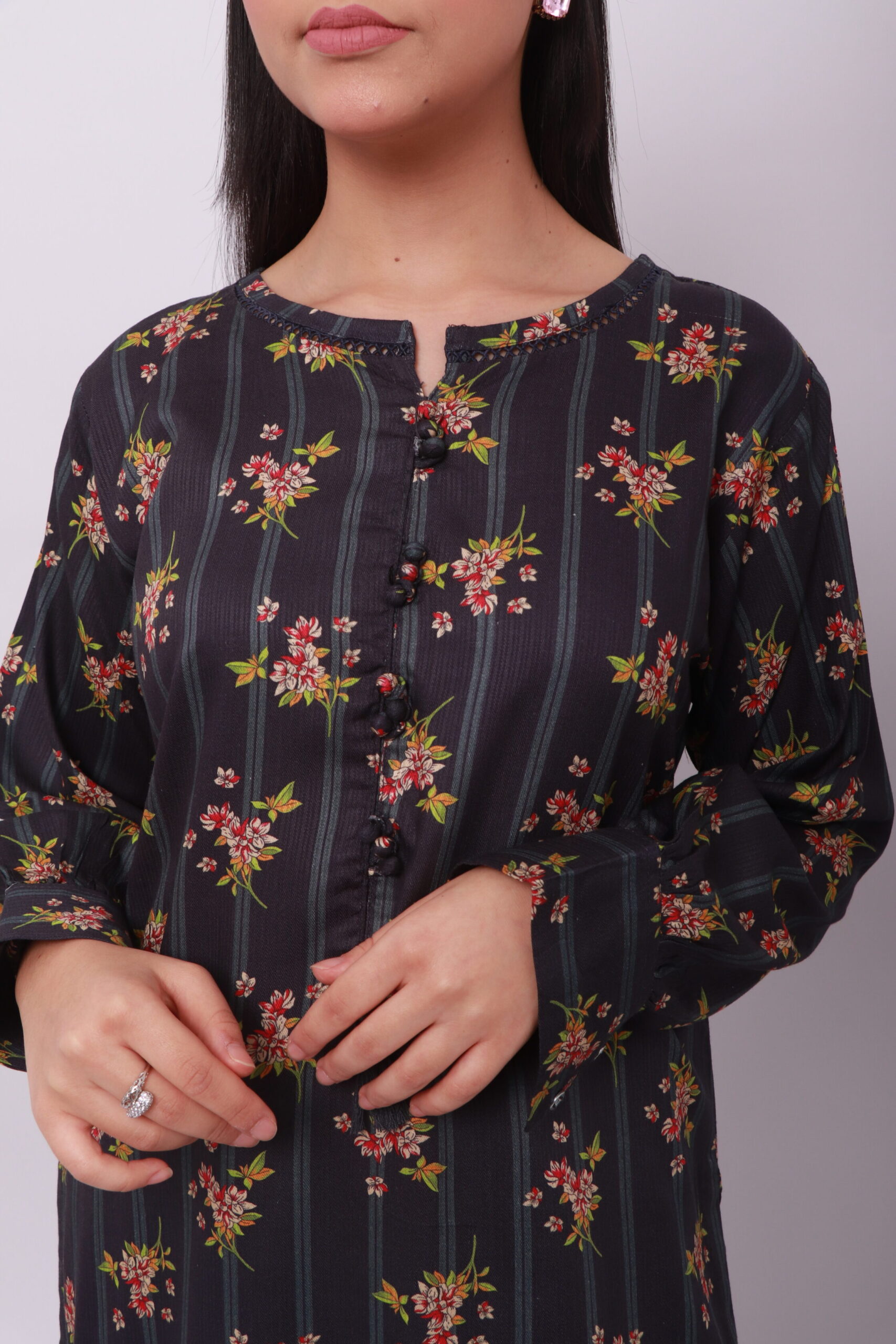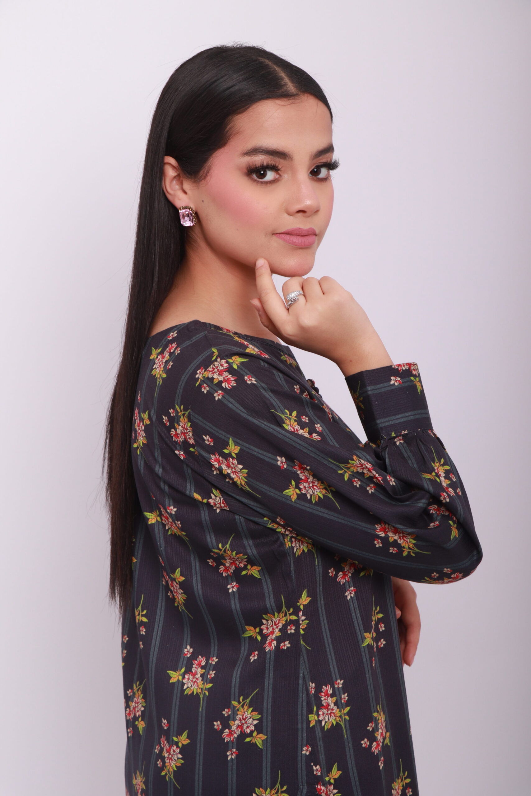 Cette tunique en linen imprimé est ornée de fines dentelles à l’encolure et au bas de la tunique, offrant une élégance minimaliste et soignée.