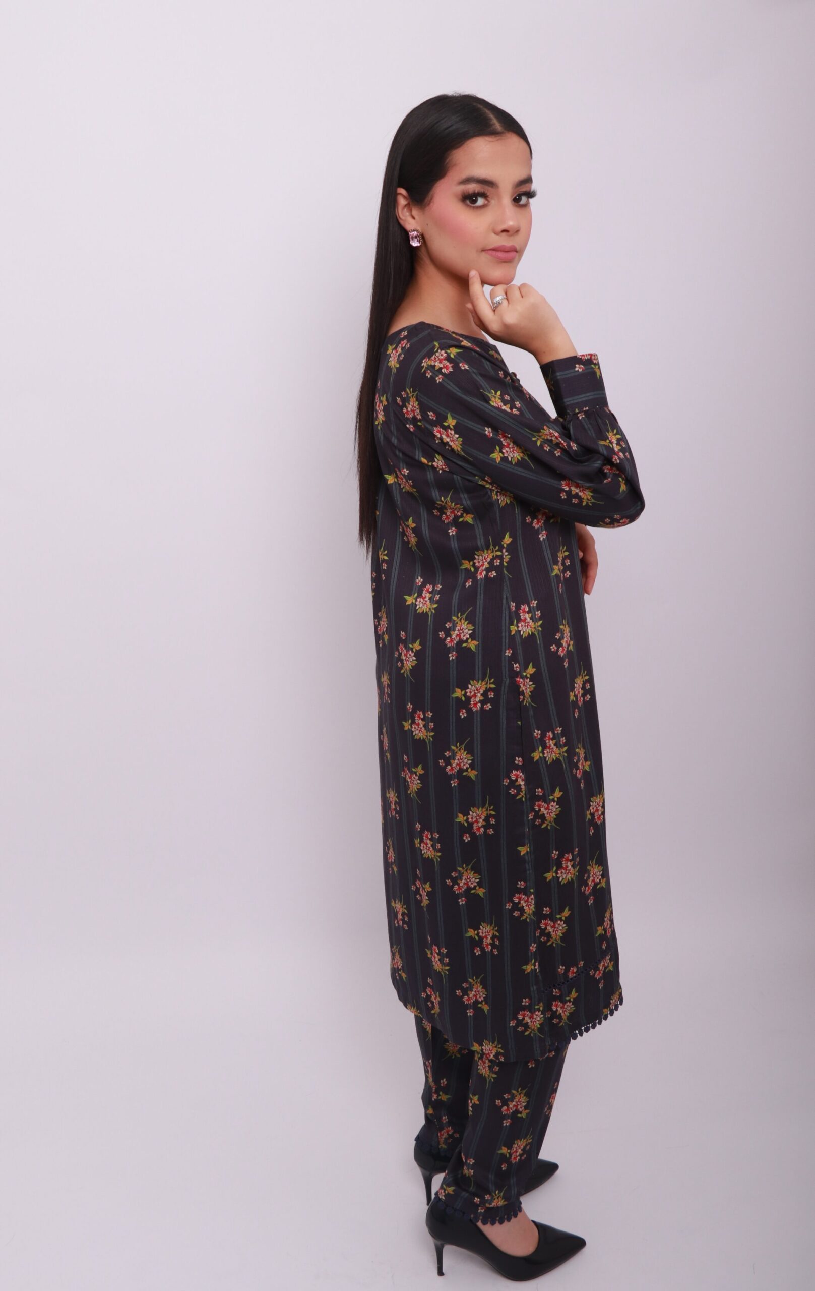Le pantalon droit assorti complète harmonieusement la tenue pour un look à la fois confortable et raffiné.