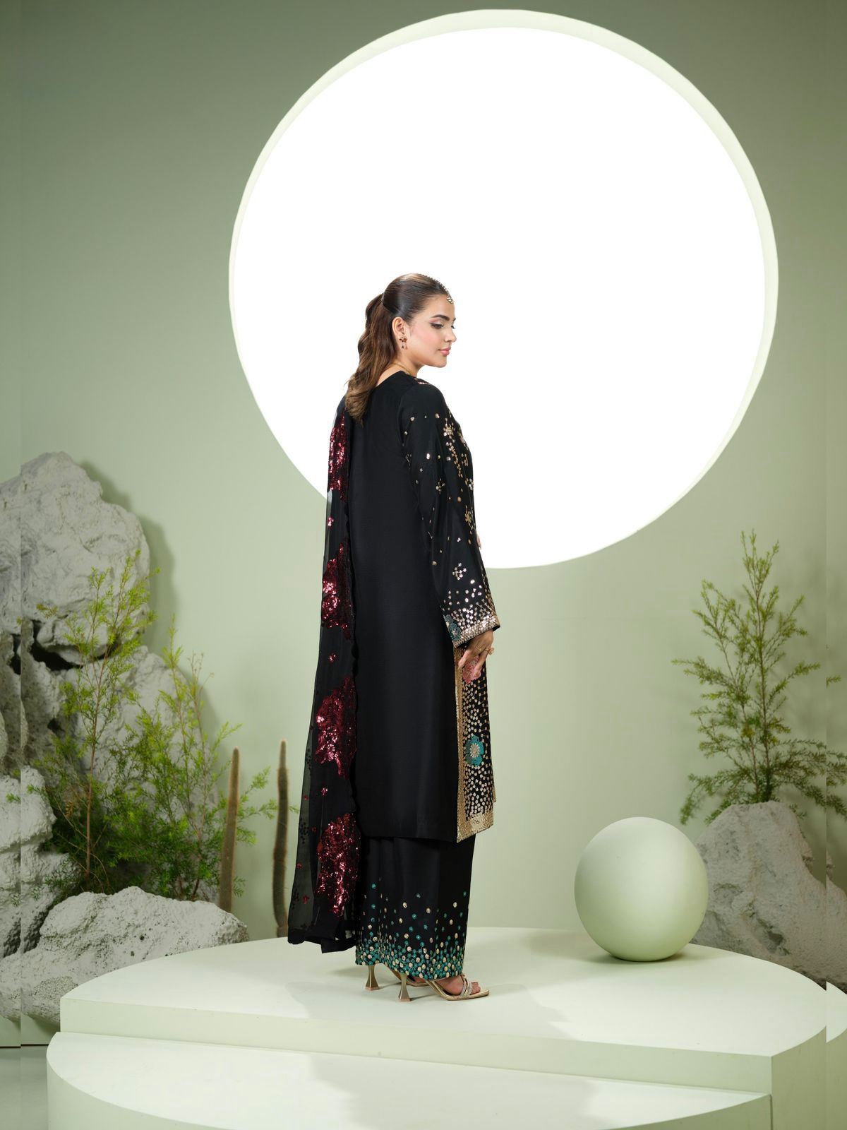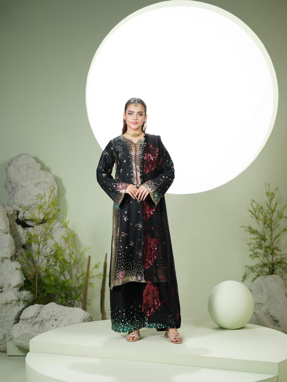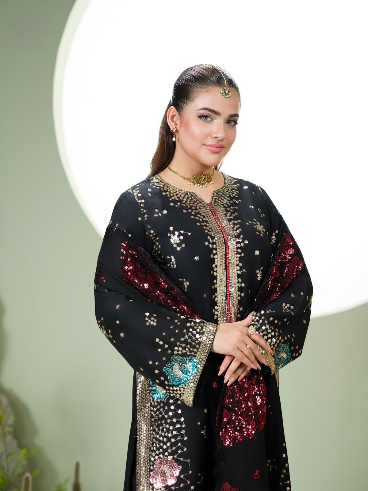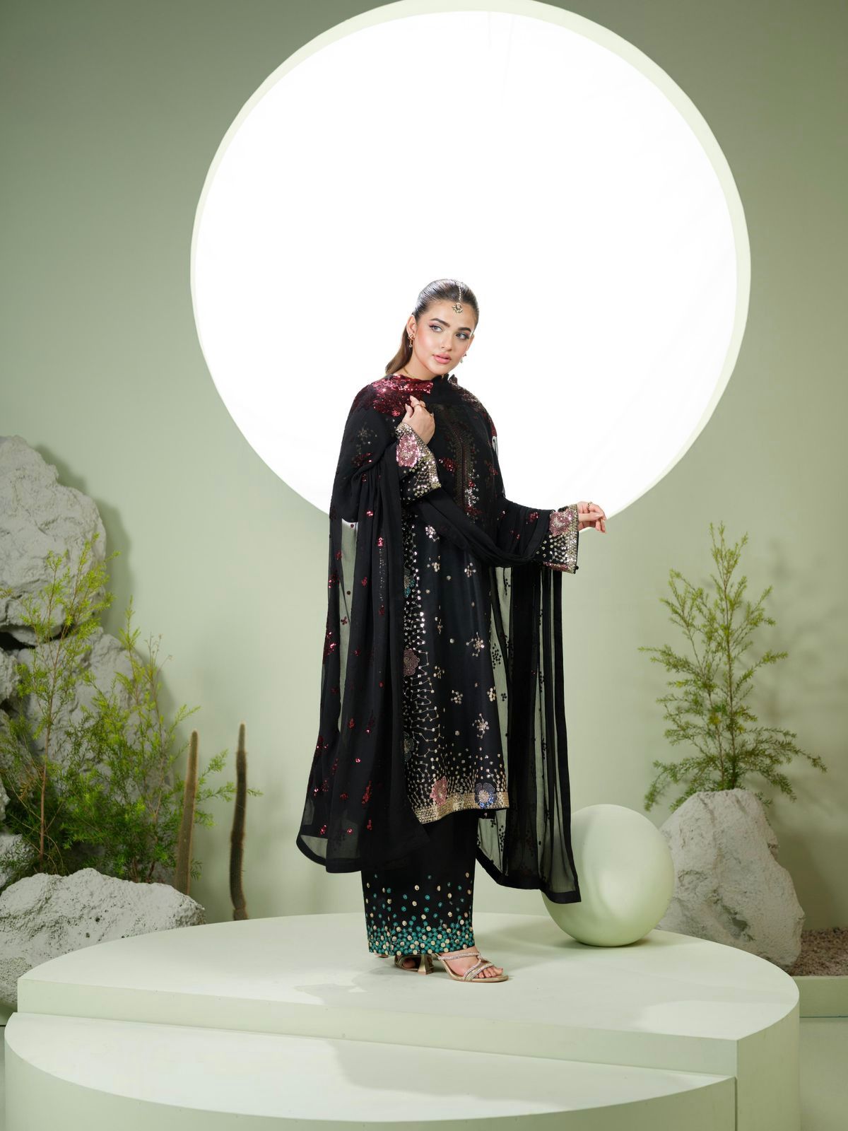 Le dupatta en Chiffon est entièrement sublimé par de délicates broderies, apportant une touche chic et harmonieuse à l’ensemble. ✨